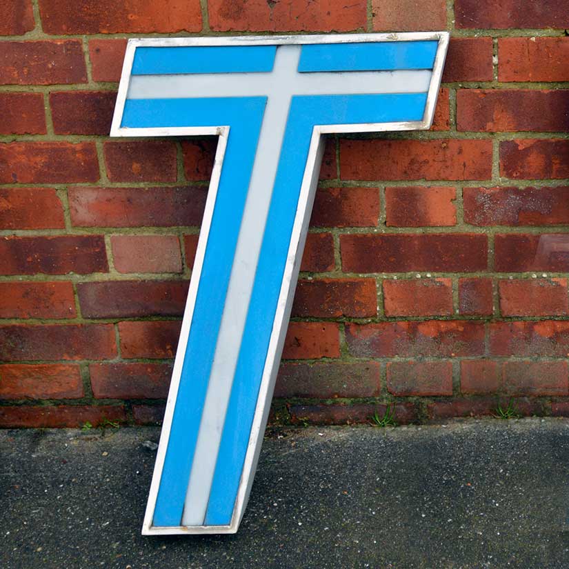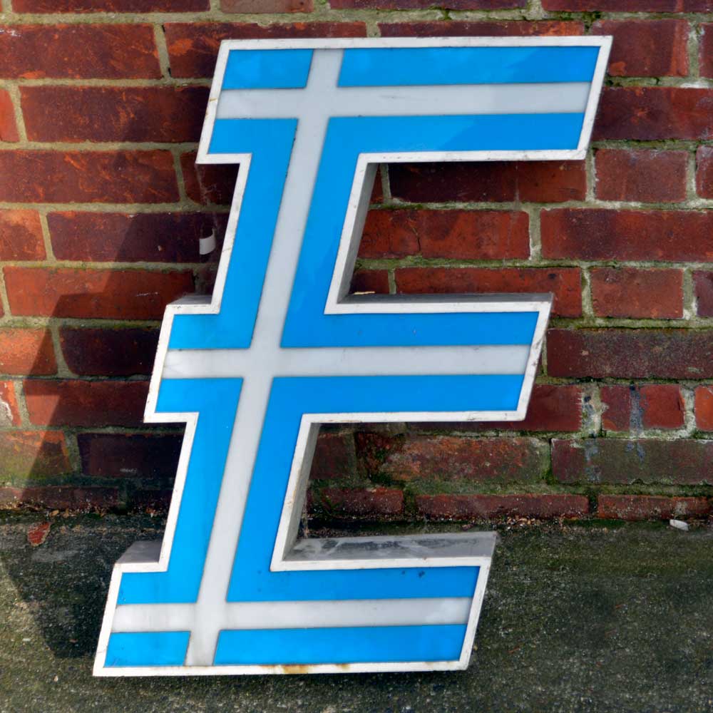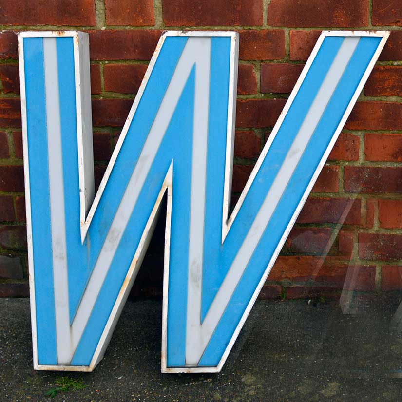 E. & A. WATES LTD White painted metal with blue plastic insert: Large 71h x 10d x 43w cm Medium 47h x 10d x 39w cm.