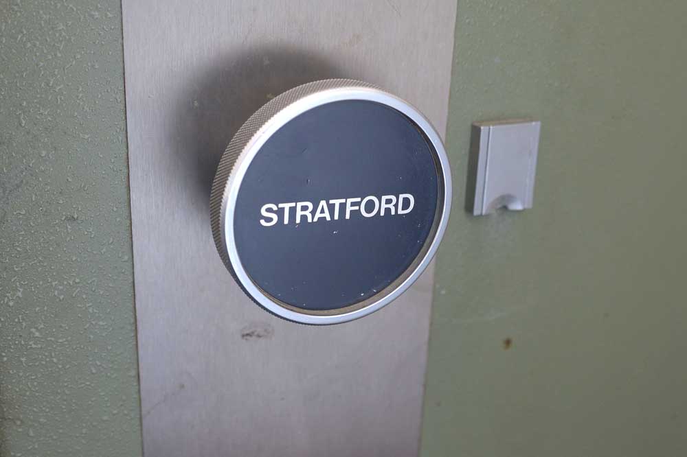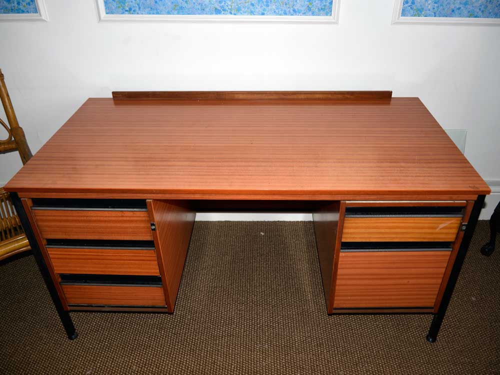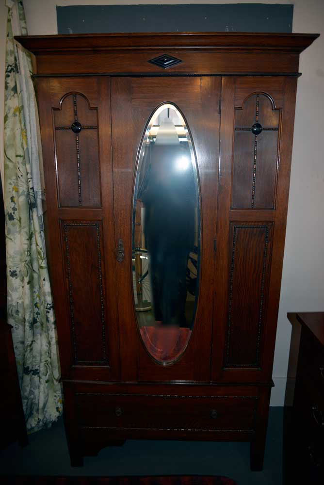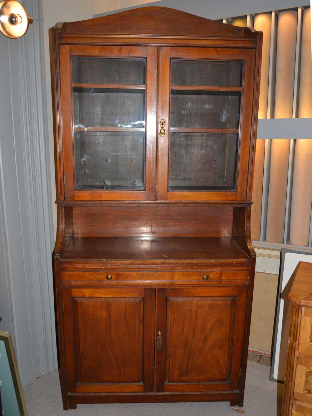 Antique Low Boy, locking, comprising two panelled fielded doors with two shelves (four shelf positions) and provision for hanging rail. Two flights of six drawers. Bedroom piece or comprehensive storage.